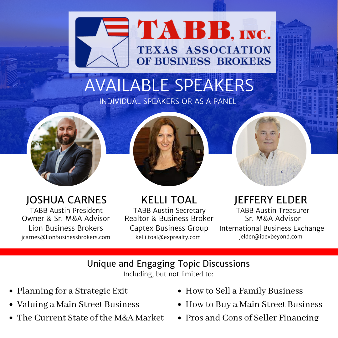 AUSTIN, Texas, May 10, 2023 (Newswire.com) - The Austin chapter of the Texas Association of Business Brokers (TABB) has announced a new educational speaker program for the Austin business community.