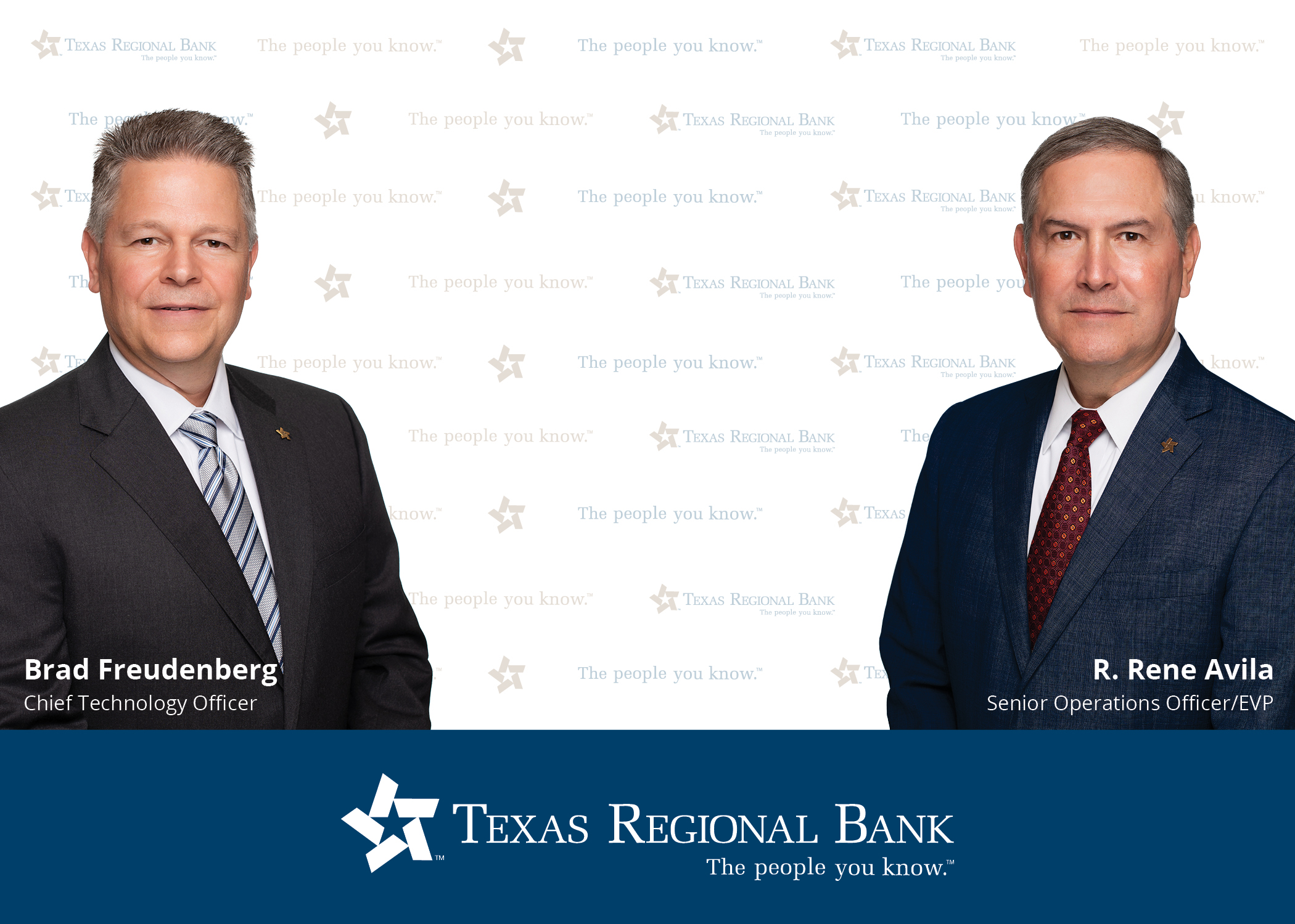HARLINGEN, Texas, August 2, 2021 (Newswire.com) - Texas Regional Bank announces the appointment of Brad Freudenberg as Chief Technology Officer and Rene Avila as Senior Operations Officer. "We are pleased to welcome these two gentlemen and look forward to benefiting from their expertise," said Michael Scaief, Chairman of the Board and Chief Executive Officer.