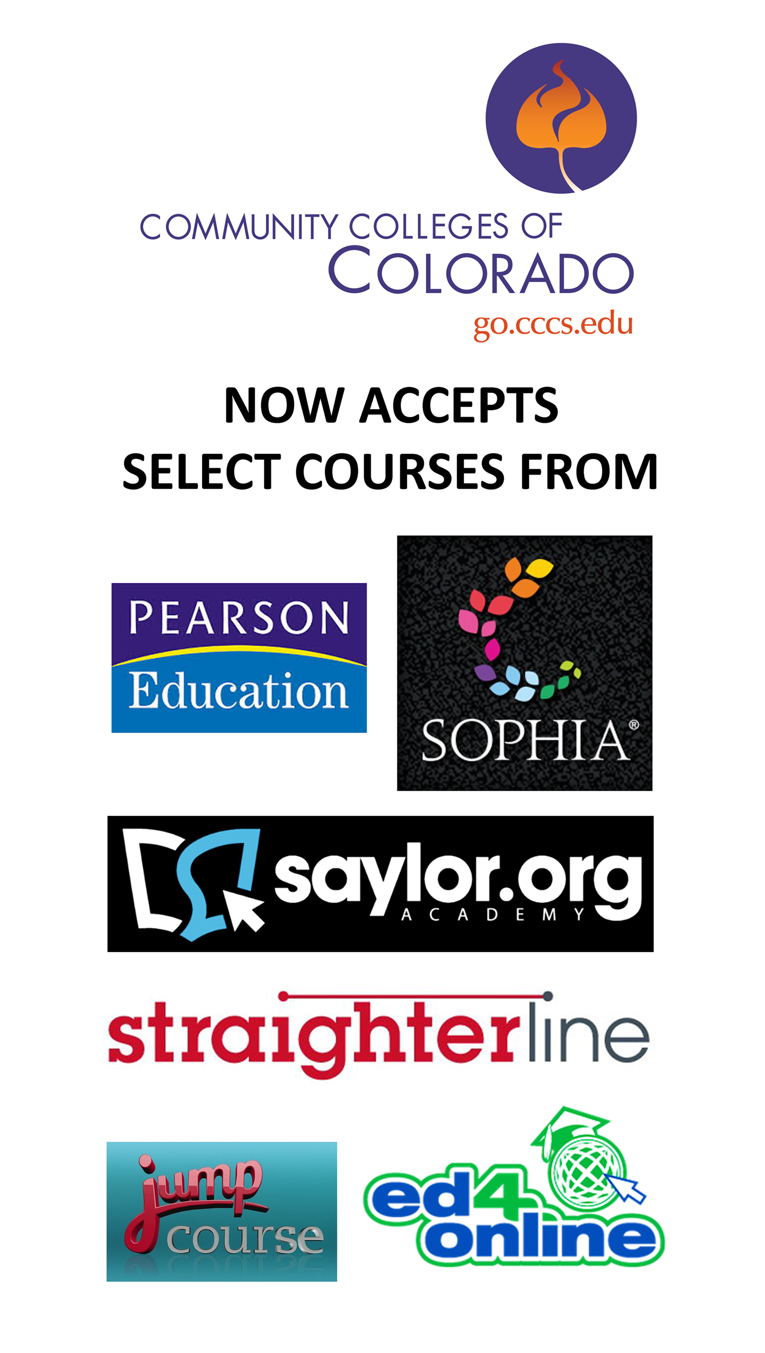 "The Colorado Community College System is committed to offering high-quality and affordable higher educational opportunities to all Coloradans. We believe these alternative credits will offer additional pathways to help students complete their degrees in a timely, affordable manner,"