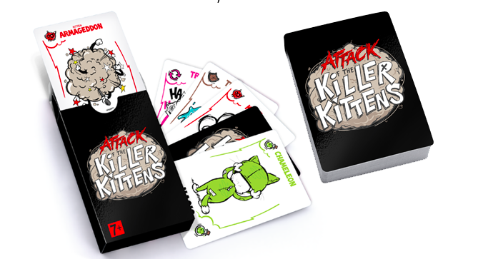 According to Next Left Studios, the Attack of the Killer Kittens is “a card game for people who are into Killer Kittens, mayhem, Armageddon, seeing your friends cry and being the last one standing.”