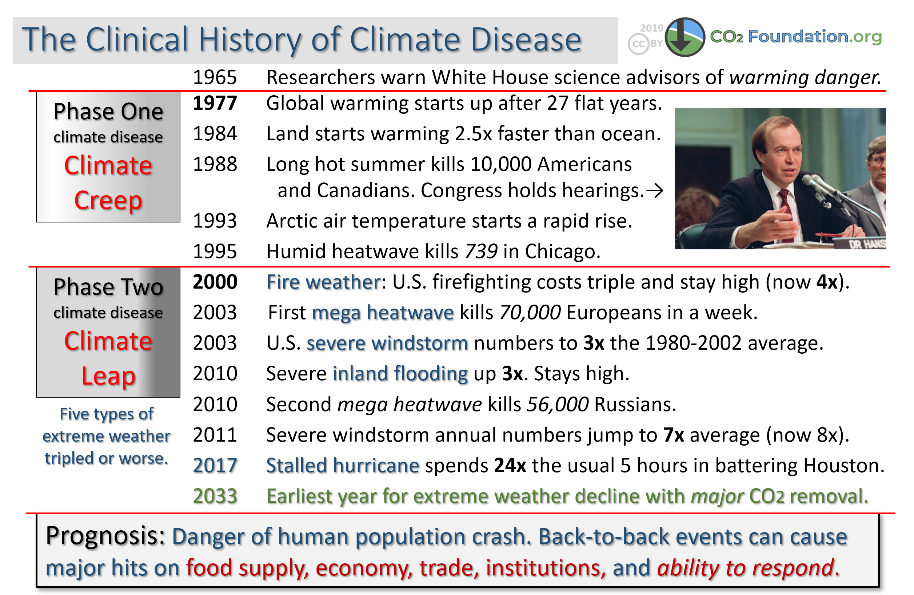 At the CO2 Foundation, he said, “We describe extreme weather as the major player, not the next creep up in global average surface temperature. And we try looking at it with the mindset of emergency medicine physicians. At the CO2 Foundation we are developing plans for a ‘Manhattan Project 2.0’ to design and prototype our way out of this mess, cleaning up the excess CO2 overhead.”