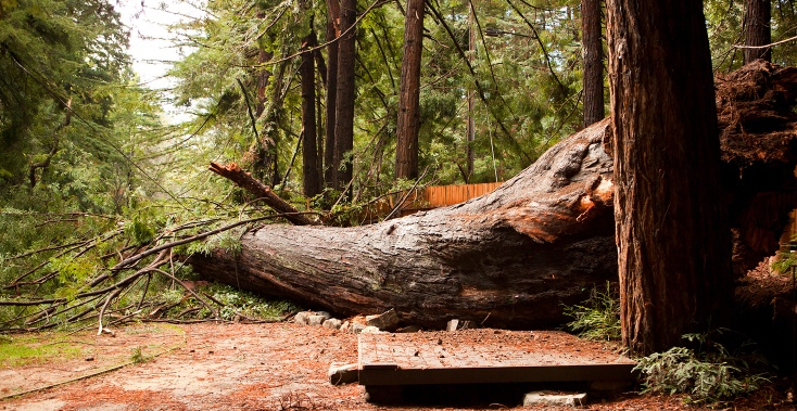 In December, Mike was at the Library when he heard a loud cracking sound. He ran outside and saw the tree trunk explode. Glacially, and defiantly taking down a power pole and telephone lines, the tree finally settled on the ground.
