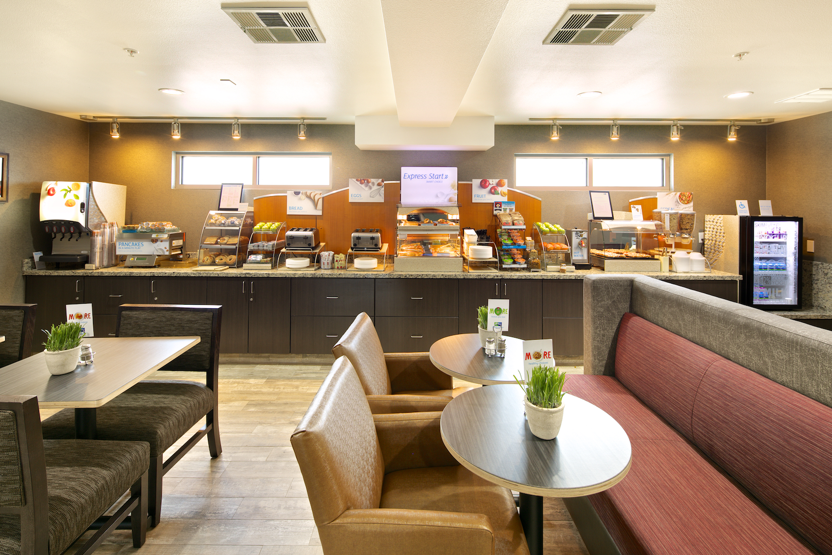 The breakfast room, where the complimentary buffet style breakfast is served, received a modern makeover as well with new booth style tables and cushioned seating. A new Market was added in the lobby for an extra level of convenience, and a brand new outdoor patio was also added complete with a fire pit and plenty of comfortable seating for enjoying the sunny days and evening breezes Paso Robles has to offer. This allows guests an outdoor space to relax and enjoy the hotel’s evening complimentary hospitality beer and wine reception offered Monday through Thursday.