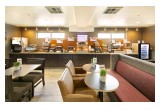 The major exterior facelift included modern stone accents, a new dual automatic door entrance, and lush landscaping. Grand renovations were also made to the lobby, pool, 24-hr business center, and 24-hour fitness center, which was enlarged to almost three times its previous size. The property now boasts two different meeting spaces. The main meeting room is 1150 square feet and is perfect for conferences, meetings, trainings, and family or corporate gatherings. The new additional meeting space is perfect for smaller board style meetings. Both spaces are equipped with wireless internet connection and offer projector and screens for power point presentations.
