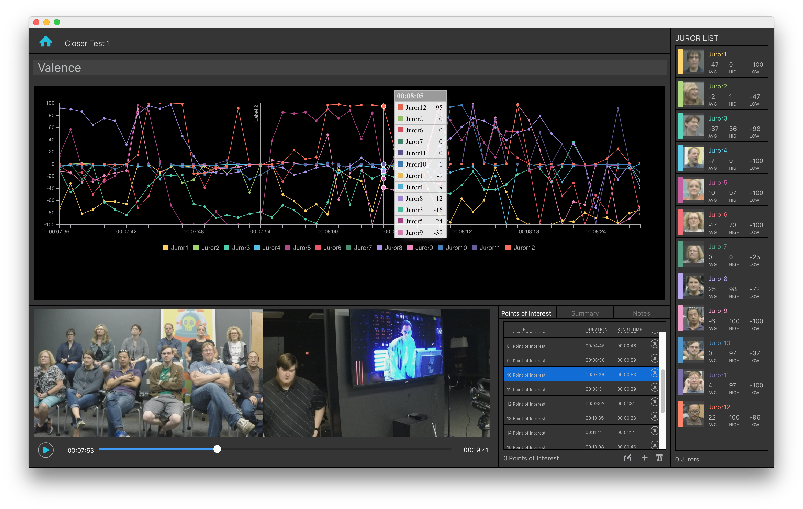 "Jury Lab's technology is designed to identify unintended and unexpected jury responses and provide the opportunity to dig deeper in order to refine and perfect the argument prior to trial to increase the chances of a favorable outcome. Through analysis of the facial expressions of up to 12 mock jurors, legal teams are able to test arguments and key points of evidence to gain greater clarity and certainty, which can translate into smarter settlements, adjustments in case strategy, and improved chances of victory."