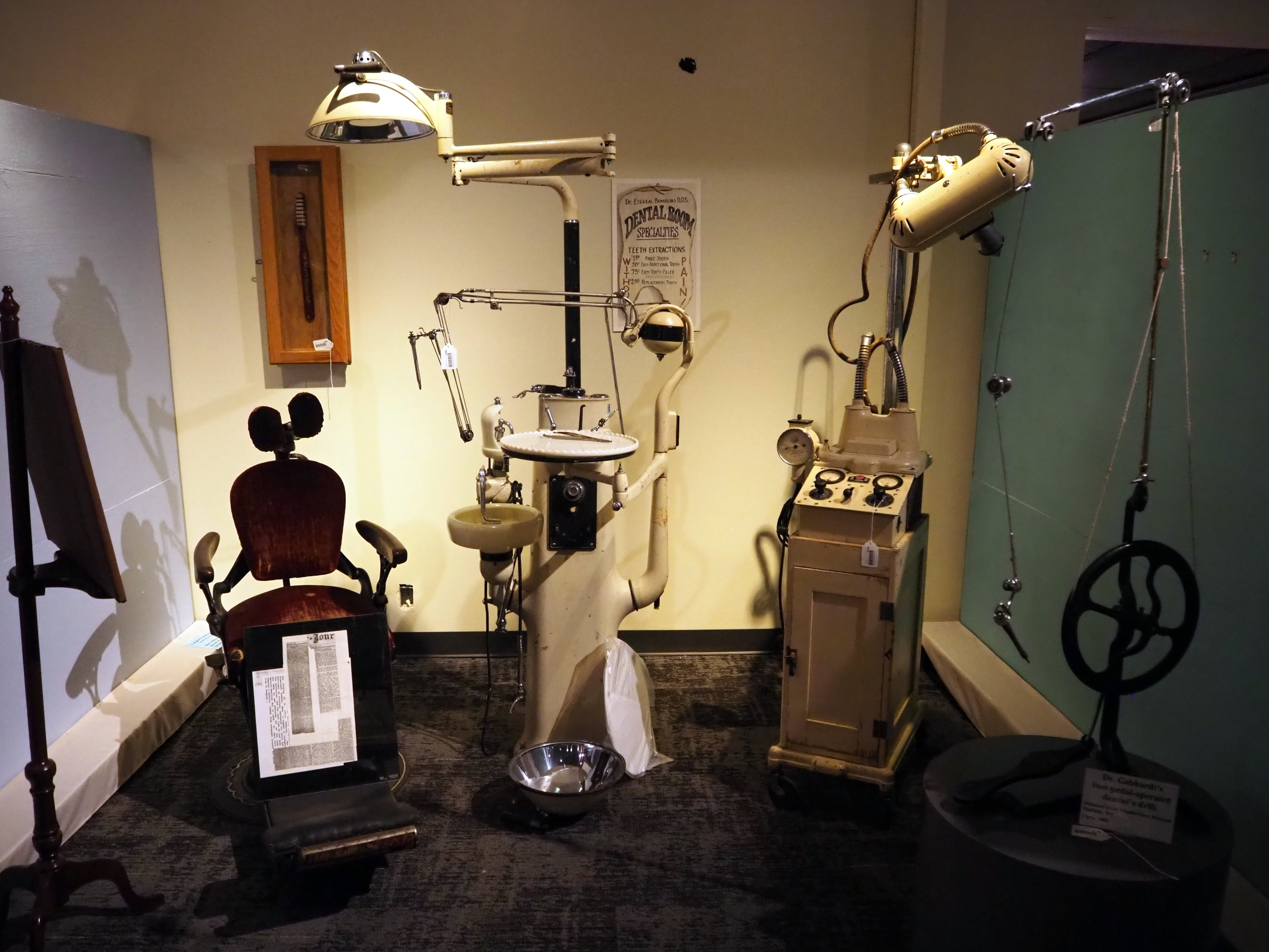 The museum has sold the building and will sell the artifacts and museum fixtures in an online auction. Notable items include a rare pediatric iron lung from the 1940s used to treat the polio virus; a Chippewa wood and rawhide medicine drum; a Nigerian Yoruba tribe chieftain sash circa 1880; a late 1800s Kratzer Carriage Company horse-drawn doctor's buggy; George Washington Presidential Peace medals from 1789-95; rare apothecary bottles and jars; and a Columbian antique dental chair in which Dr. Louis Gebhardt was beaten to death by a patient on Nov. 1, 1904.