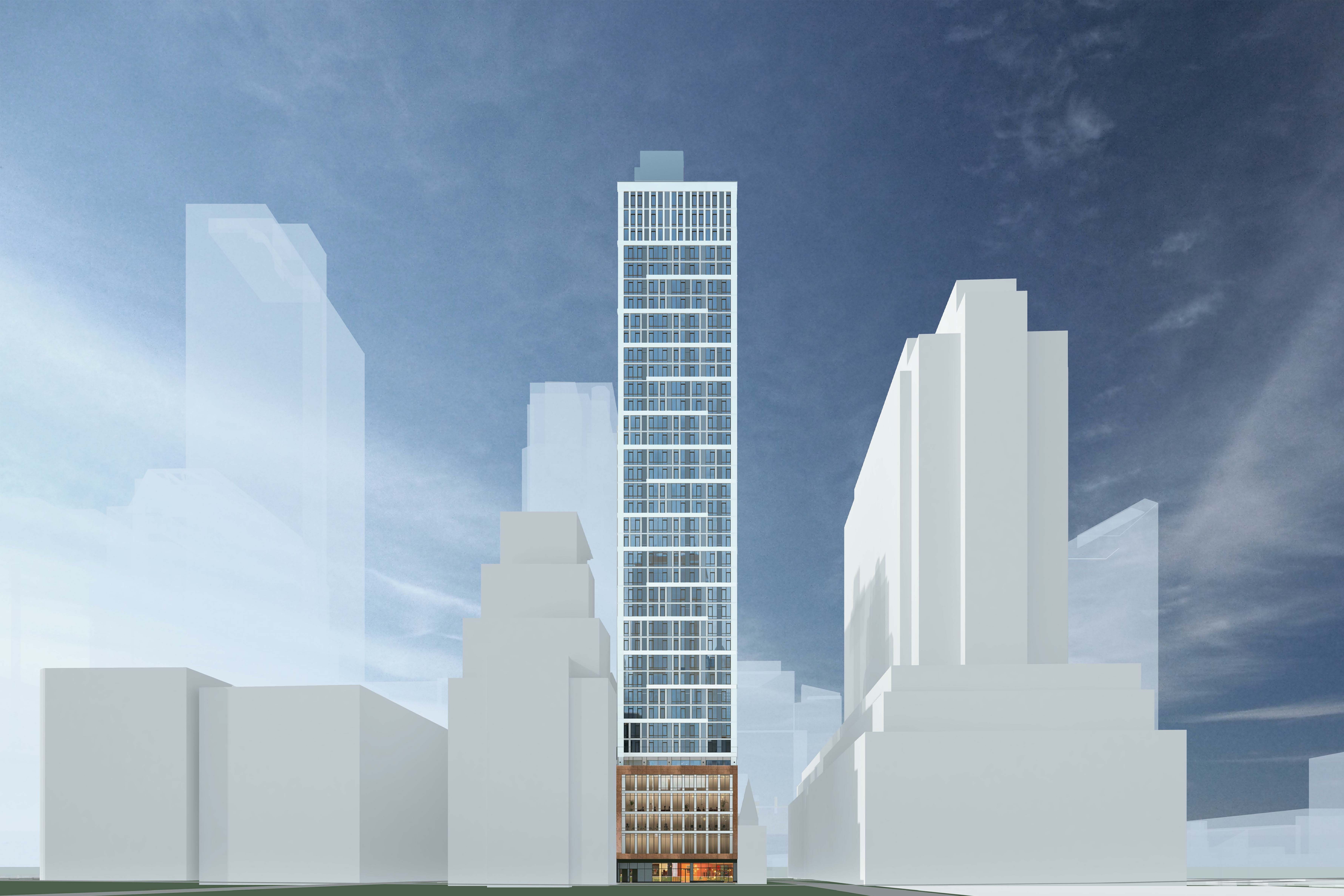 The innovative design of the tower will incorporate both community and commercial space. Three of the floors will house the Newman Center, an approximate 20,000-SF ministry center serving the 150-year-old parish St. Boniface. Floors six through 40 of the 40-story tower will offer 227 apartments homes, including 69 designated as affordable.