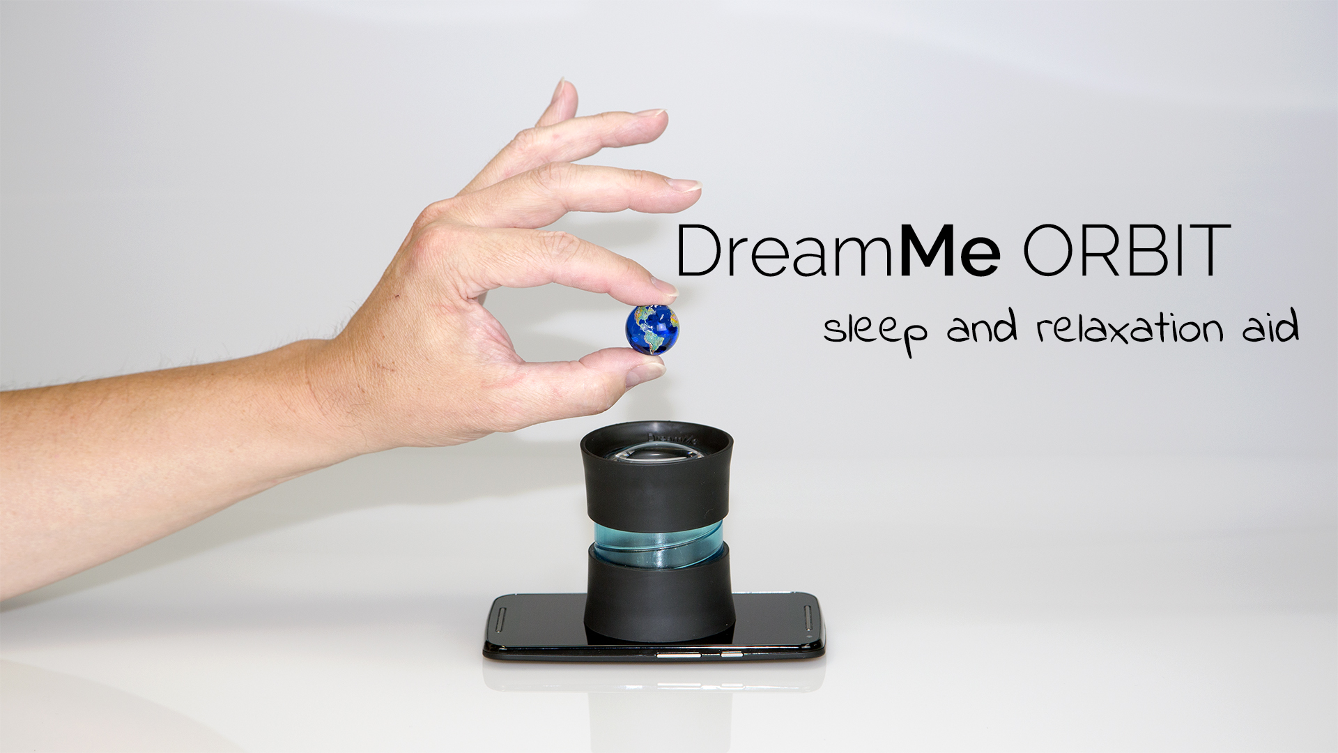 DreamMe ORBIT hardware does not require batteries or cumbersome coupling with the mobile phone or tablet, as the hardware uses a special optical system to show the selected animations right on the ceiling. While the phone is charging on the nightstand, DreamMe ORBIT makes use of it projecting parts of the display on the ceiling.