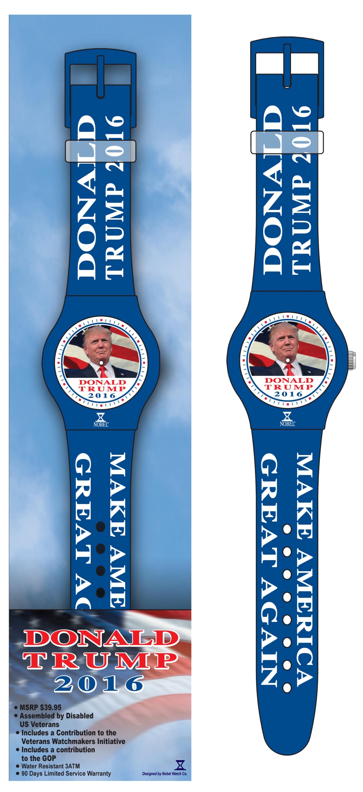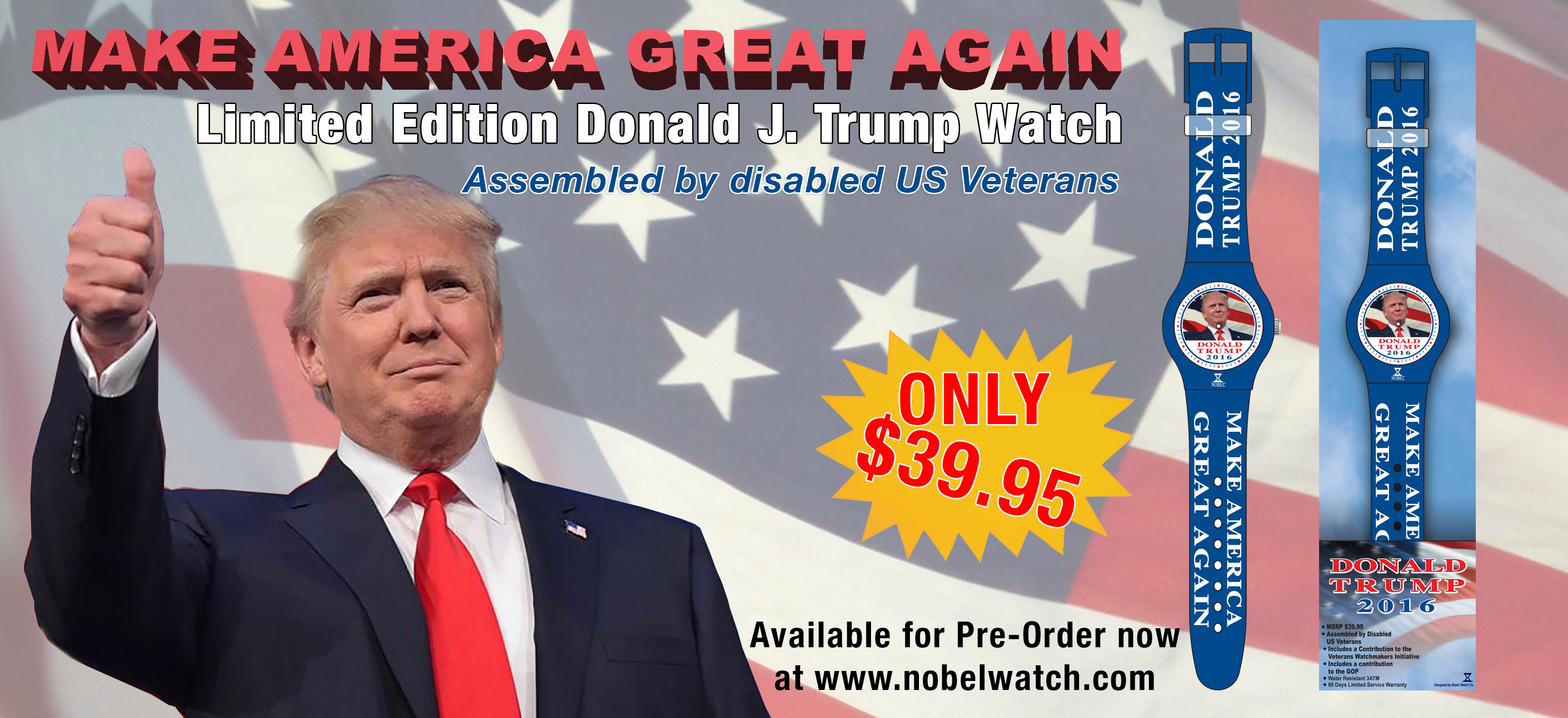 Staten Island, New York, July 19, 2016 (Newswire.com) - Nobel® Watch Company, a U.S. company that specializes in the manufacturing and distribution of mid and luxury priced watches, has recently released a limited-edition “Donald Trump-Make American Great Again” watch. The watches will be assembled by disabled U.S military veterans and sell for $39.99.