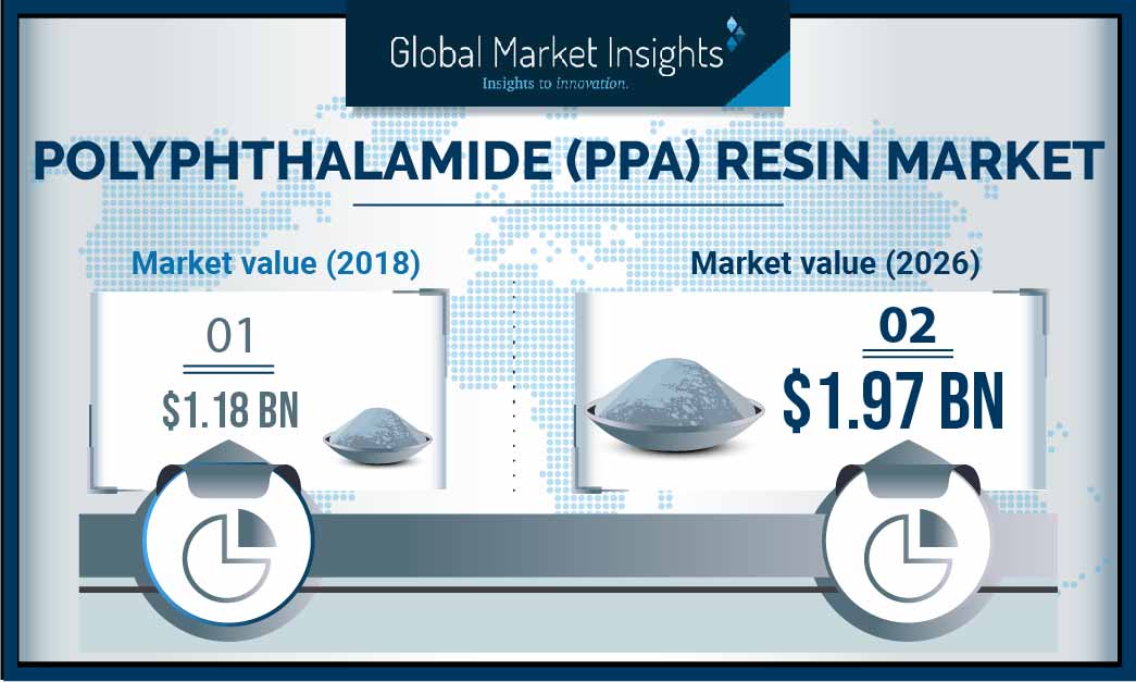 SELBYVILLE, Del., January 28, 2020 (Newswire.com) - As per the report published by Global Market Insights Inc., the global Polyphthalamide Resin Market was valued at $1 billion in 2018 and is anticipated to hit $1.9 billion by 2026, registering a CAGR of 6.5% from 2019 to 2026. The report offers a comprehensive analysis of major investment pockets, market size & estimations, drivers & opportunities, top winning strategies, wavering market trends, and competitive business scenarios.