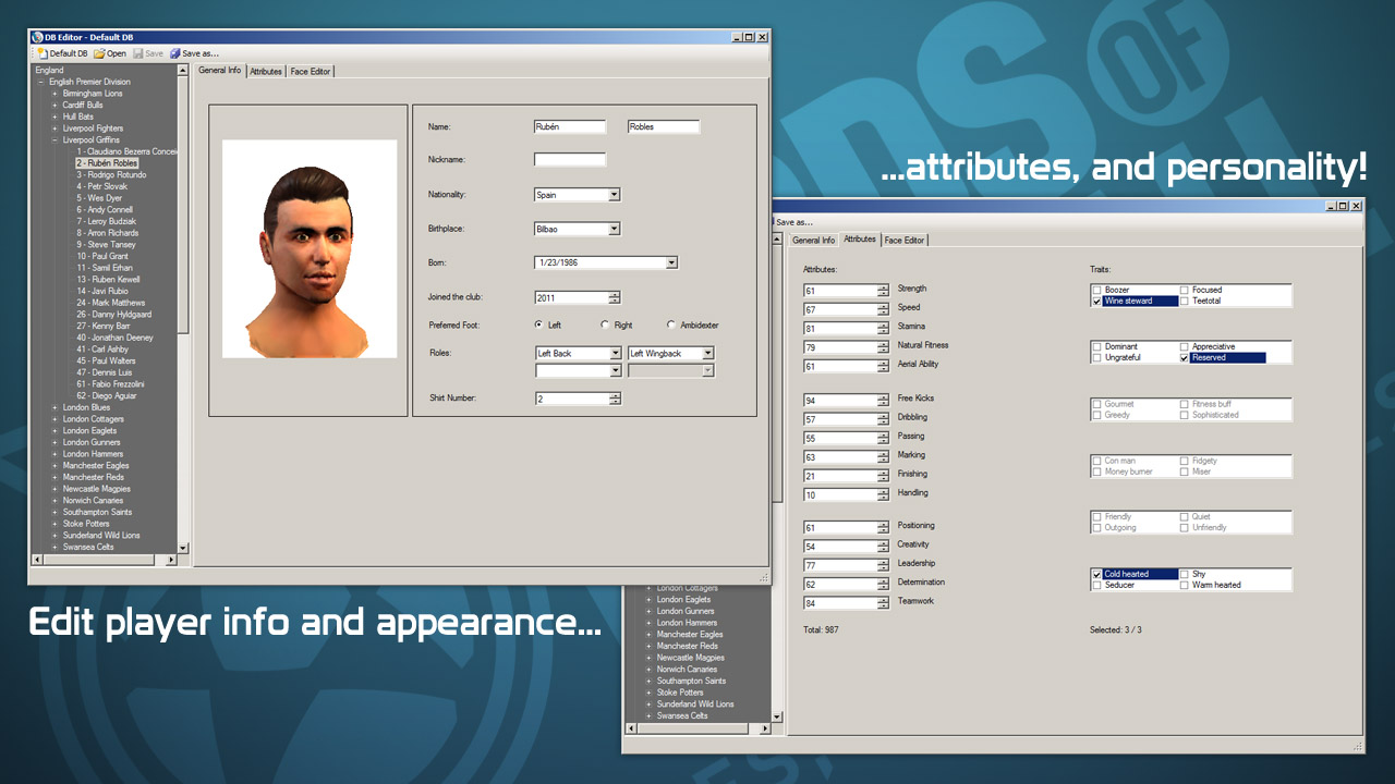 Tags: database, editor, Football, SOCCER, Videogames
