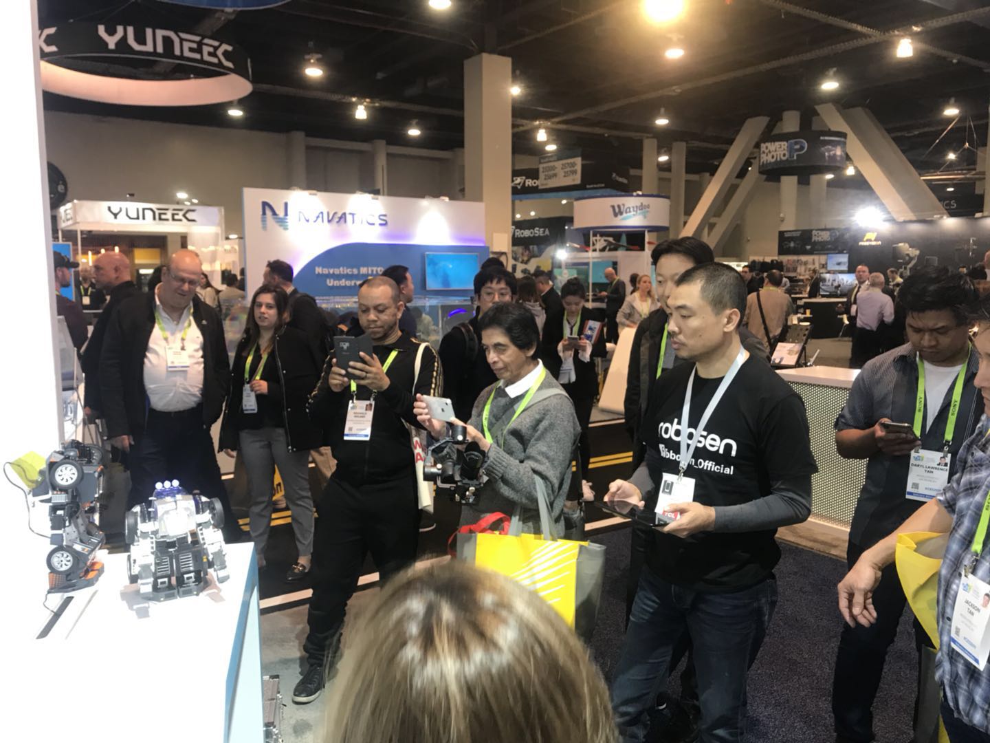 Visitors to the Robosen booth try T9