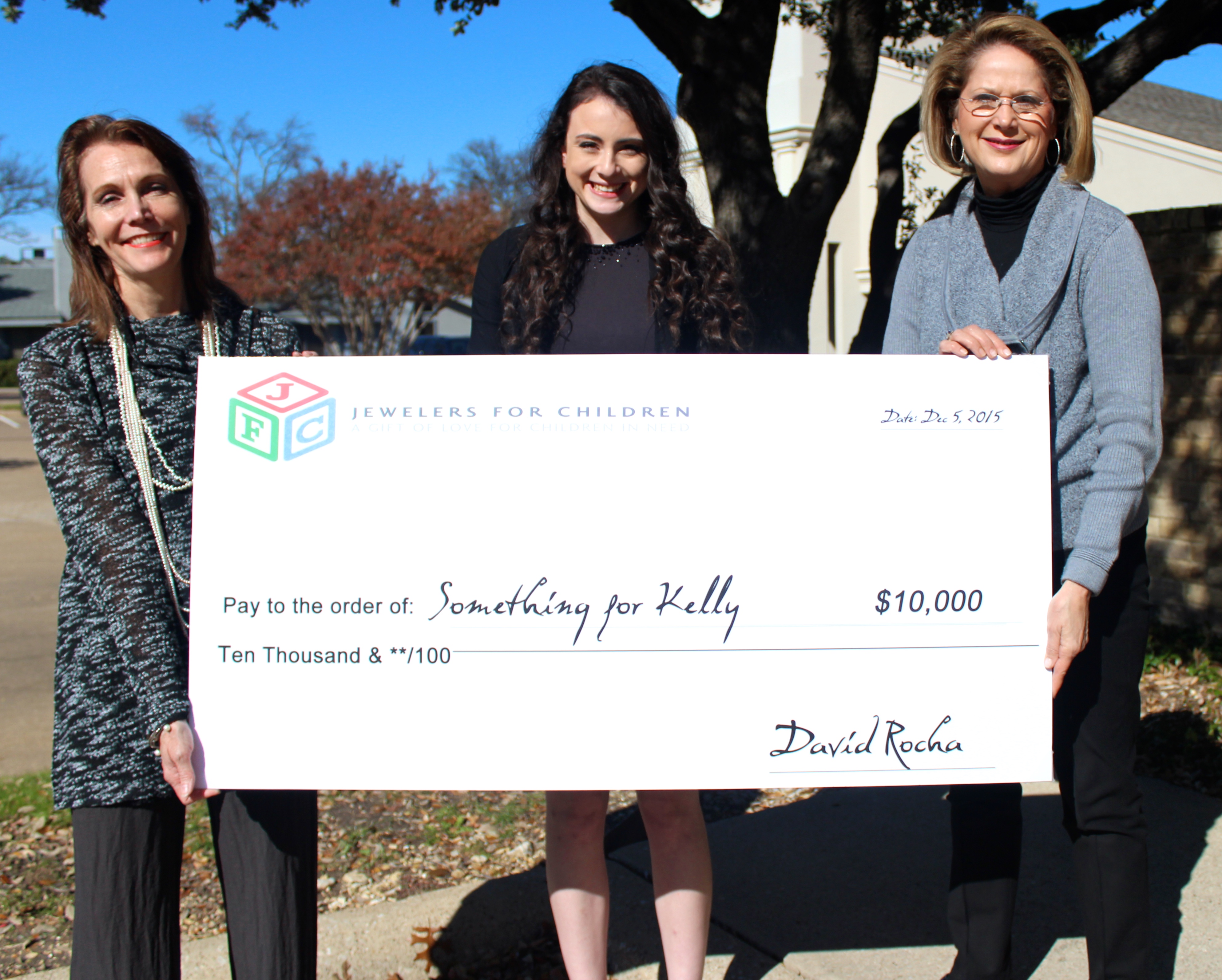 Dallas, Texas, December 17, 2015 (Newswire.com) - Representatives from The Something For Kelly Foundation received a very welcome gift from Jewelers For Children last week by enlisting the help of their Facebook fans to win a $10,000 grant.