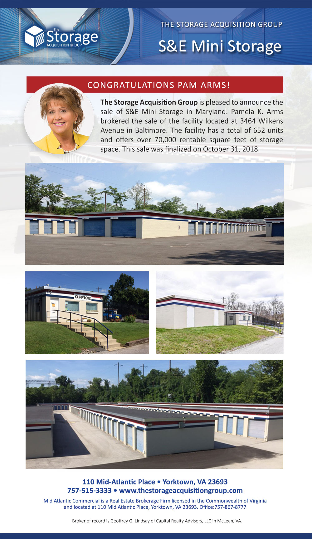 [1] Pamela K. Arms is Vice President of The Storage Acquisition Group, a division of Mid-Atlantic Commercial Real Estate.