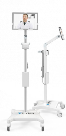 Tryten's Virtual Rounding Assistant-Tablet Cart is lightweight, easy to position and install. It supports BYO tablet and video. It is easily incorporated into current IT architectures. The elegant design includes cable management, an easy-to-position articulating arm, and various secure tablet mounts to enable rotation and tilt of the tablet. Tryten partners are available to provide the total solution including tablet, video, and services.