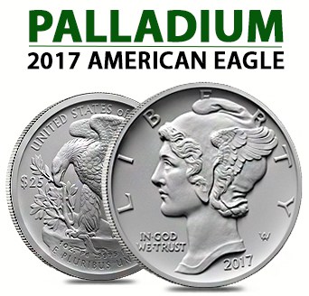 The coin carries a $25 face value, contains a full ounce of .9995 pure palladium and has a limited mintage of 15,000 coins only. A Proof version of the coin will be offered in 2018. It will be struck at the West Point Mint and bear the W Mint mark. The Proof version will have the same design as the 2017 bullion version.