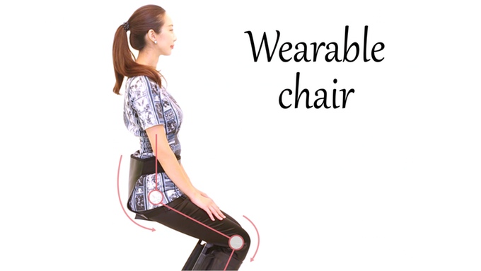 Wearable chair is good for those that work in retail, service industry, agriculture, assembly lines, etc. and helps prevent herniated discs, musculoskeletal disorders, hip/knee diseases, and varicose veins.