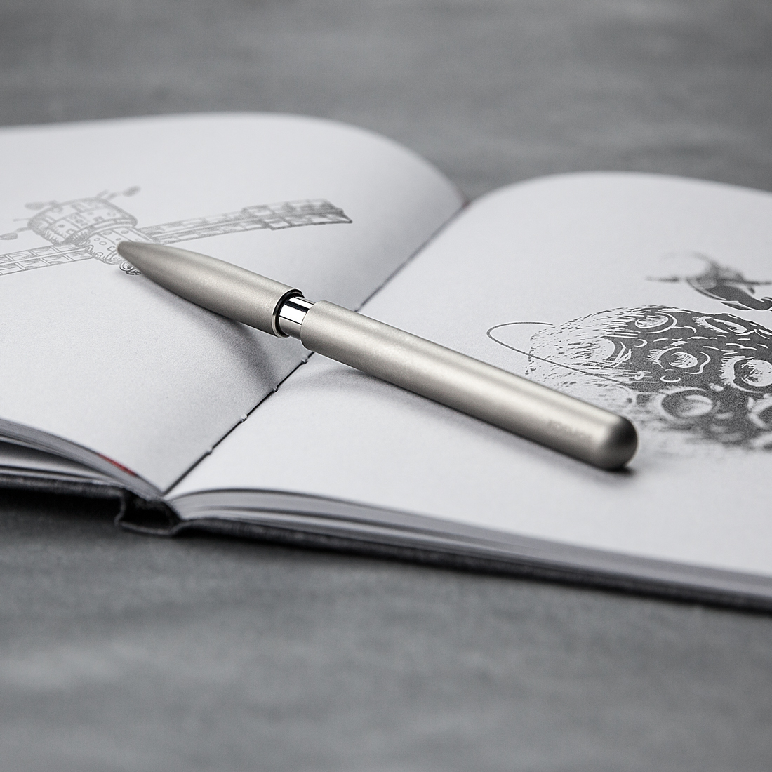 Created as the ultimate design pen, the writing utensil is a homage to intuitive functionality. How so? It houses a futuristic mechanism that employs magnetic forces to hold the cap once open. And open it certainly does. With the ease of form, the Titanium pen can be opened with one hand and immediately used without added effort. Based on a universal pattern called the Golden Ratio, the ergonomic pen is noted for its balance and strength. This is due to applying the historic pattern to every component.