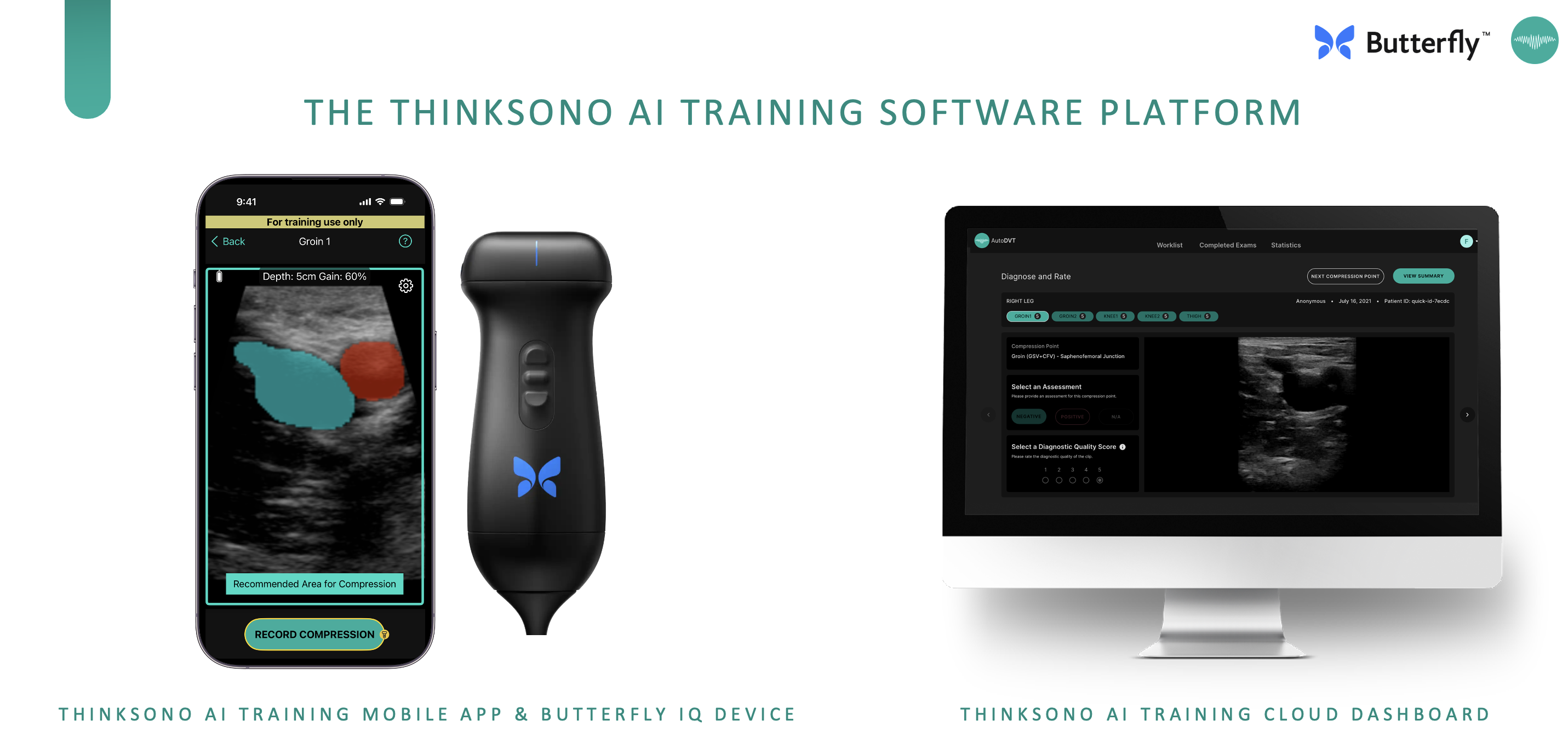 ThinkSono AI Training is for training purposes only and not used for diagnosis or any clinical decision making. It is not FDA or CE marked as it is not a medical device. ThinkSono AI Training is only available on iOS with Butterfly Devices.