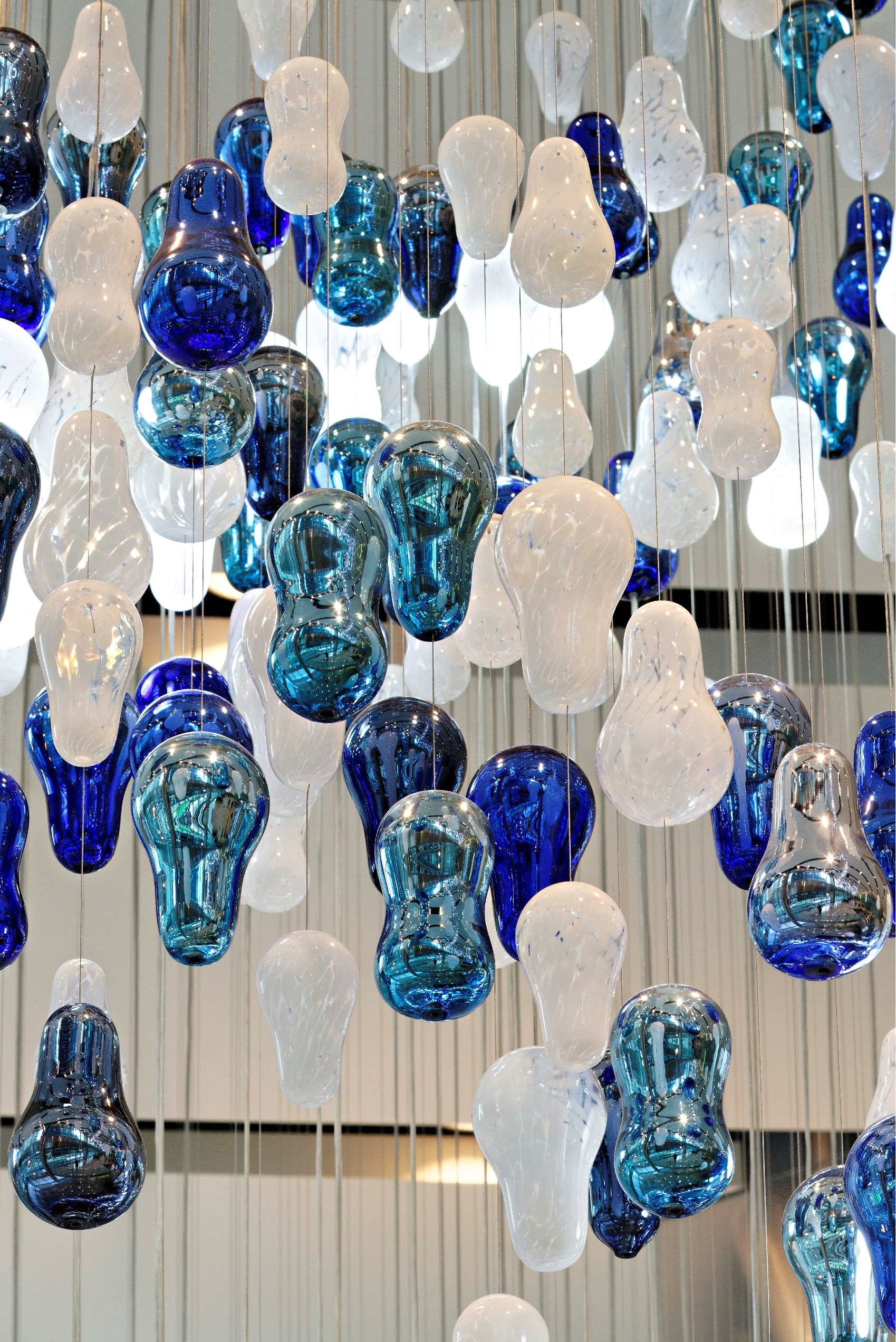 To empower this breathtaking impression, different lighting elements were placed inside certain components. The Lasvit sculpture is 180 feet long and contains 5,675 individually blown glass pieces, and an impressive 674 LEDs.