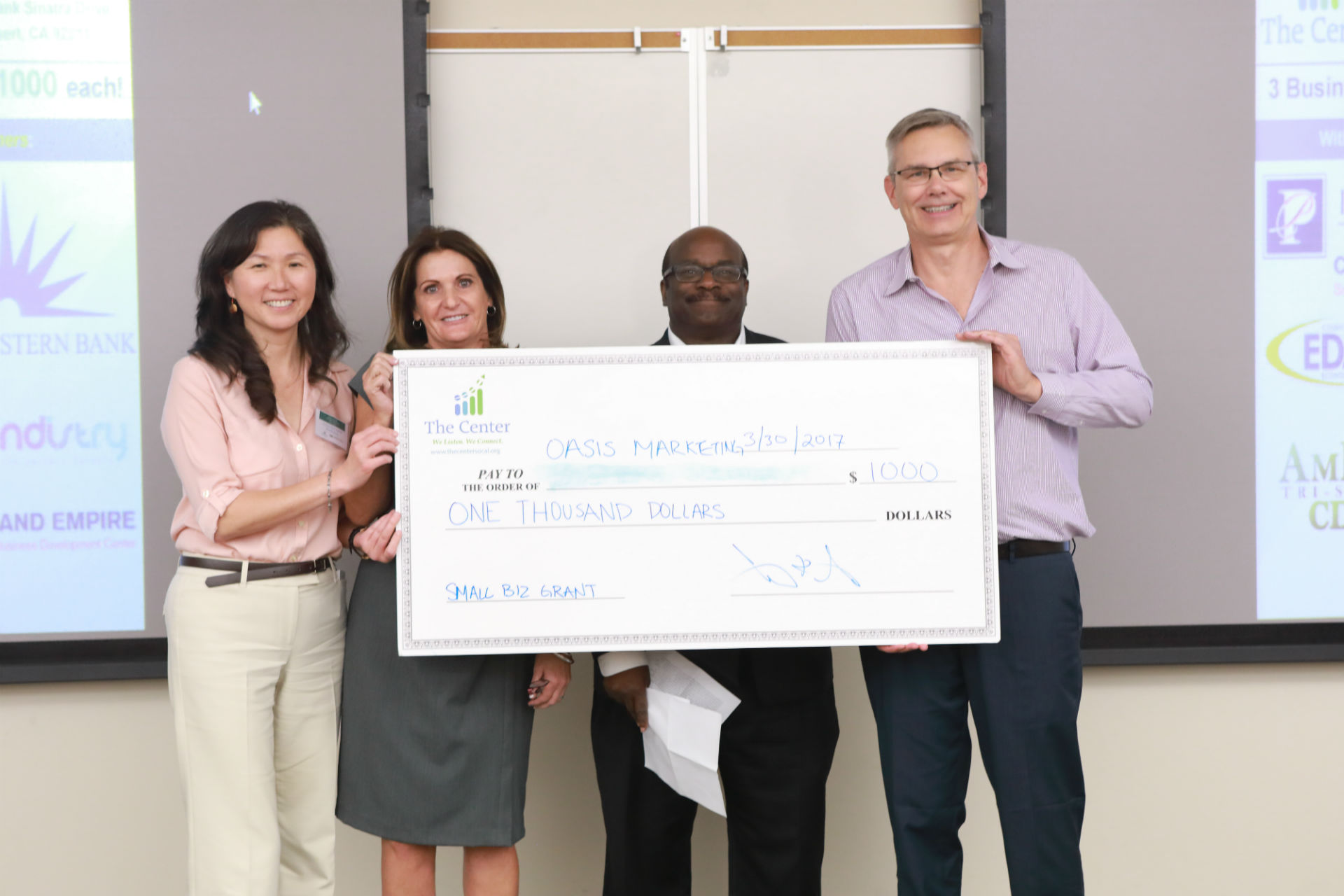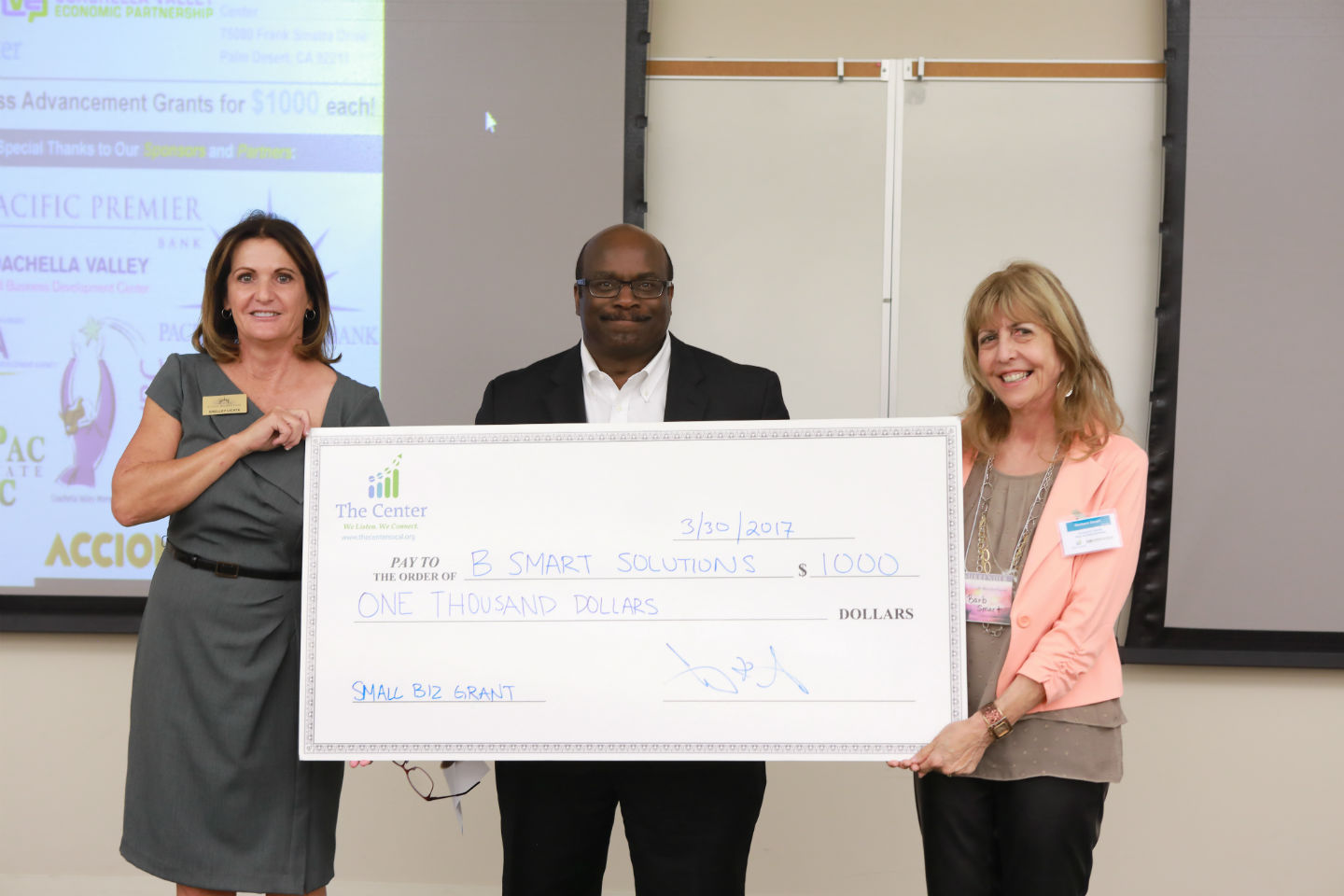 Palm Desert, CA, April 12, 2017 (Newswire.com) - Three Coachella area business owners were each awarded $1,000 business advancement grants at a workshop held on March 30th at the Palm Desert Center of UC Riverside. The “Access to Capital” event was hosted by Orange County nonprofit, The Center, which offers educational and coaching services to small businesses throughout southern California and sponsored by Pacific Western Bank. The event featured speakers from a number of small business loan providers including, Lendistry, a southern California based online lender, Accion, and Experian. The winners of the $1,000 grant were B Smart Solutions, The Coachella Valley Independent, and Oasis Marketing.