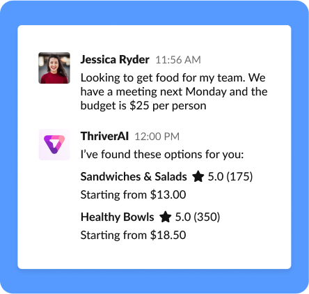 With the Thriver AI Chatbot, employees can now converse with a virtual culture concierge to easily explore and discover the trendiest and most exciting team services available through the Thriver marketplace. Whether it's booking a team-building activity, ordering food for the office, or planning their holiday party, the AI Chatbot is a one-stop solution for all workplace service needs.