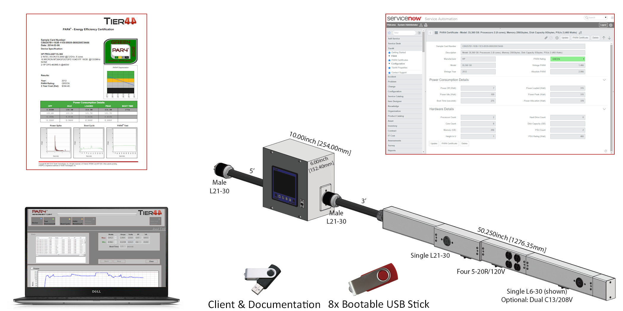 PAR4 creates reference templates that you can associate with your device details. No more data entry by device, just pick the appropriate reference template and you have accurate power and efficiency details. PAR4 also includes a complete bench test kit with meter, laptop, measurement software, and USB flash drives that come bundled with the application and delivered directly from Tier44, that will automatically create reference templates in ServiceNow upon completion of each benchmark. This makes it quick and efficient to create the reference templates and to have the right information available to optimize your data center capacity.
