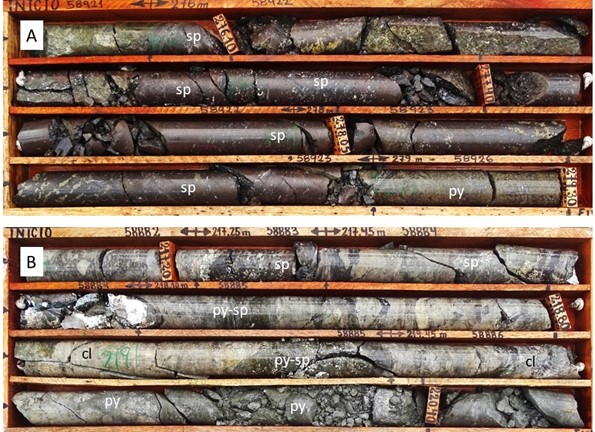 Figure 4. Photographs of zinc mineralization in hole A23-216: