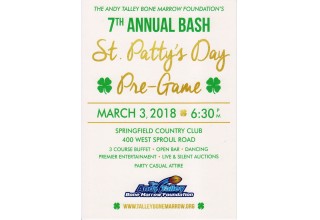 The St. Patrick’s Day “pre-game" celebration will bring members of the community together to celebrate the life-saving programs of The Andy Talley Bone Marrow Foundation, with live music, dancing, a three-course dinner, full open bar, and both a live and silent auction. The Springfield Country Club is located at 400 West Sproul Road, Springfield, PA 19064.