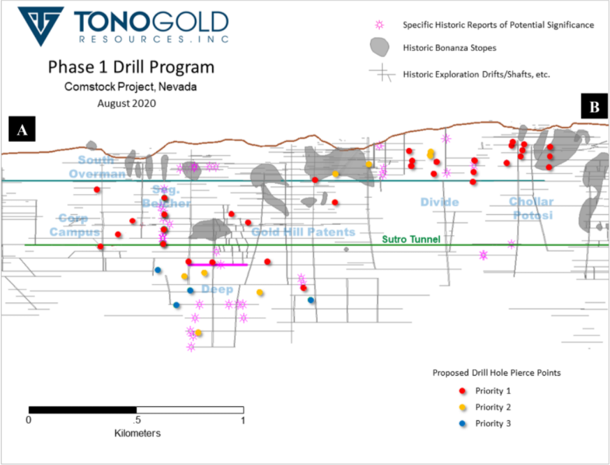 Tonogold’s initial drill program on the Comstock Lode will have a two-tier focus: