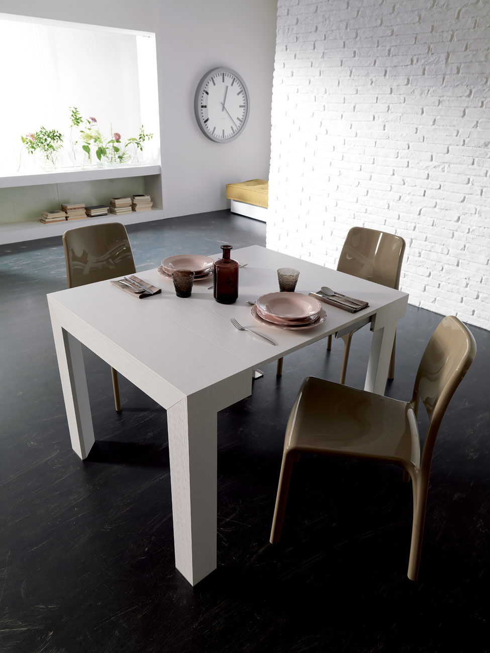 Latest living trends are removing formal dining rooms from layout designs. However this raises the issue of where to place a dining table without cluttering the room. Many people find a small four-seater dining table most useful but are stuck with no space to accommodate guests. On the other hand, a large dining table might not be functional enough to justify the space usage.