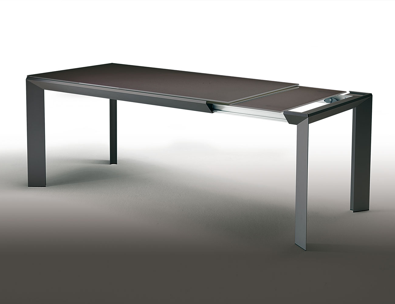 The Eclipse, manufactured by Ozzio Design, is an extendable dining table with metal central column, glass top and painted melamine extension. At first glance, it is a simple, albeit good looking, round table suitable for two. It is when the two halves reveal a central extension that the true functionality of the Eclipse can be appreciated. The table transforms into a sleek oval table capable of seating at least four people for dinner. The unique table is available in white and black colors. The Metro is another extendable table in rectangular shape. The extension makes it easy to accommodate up to ten people.
