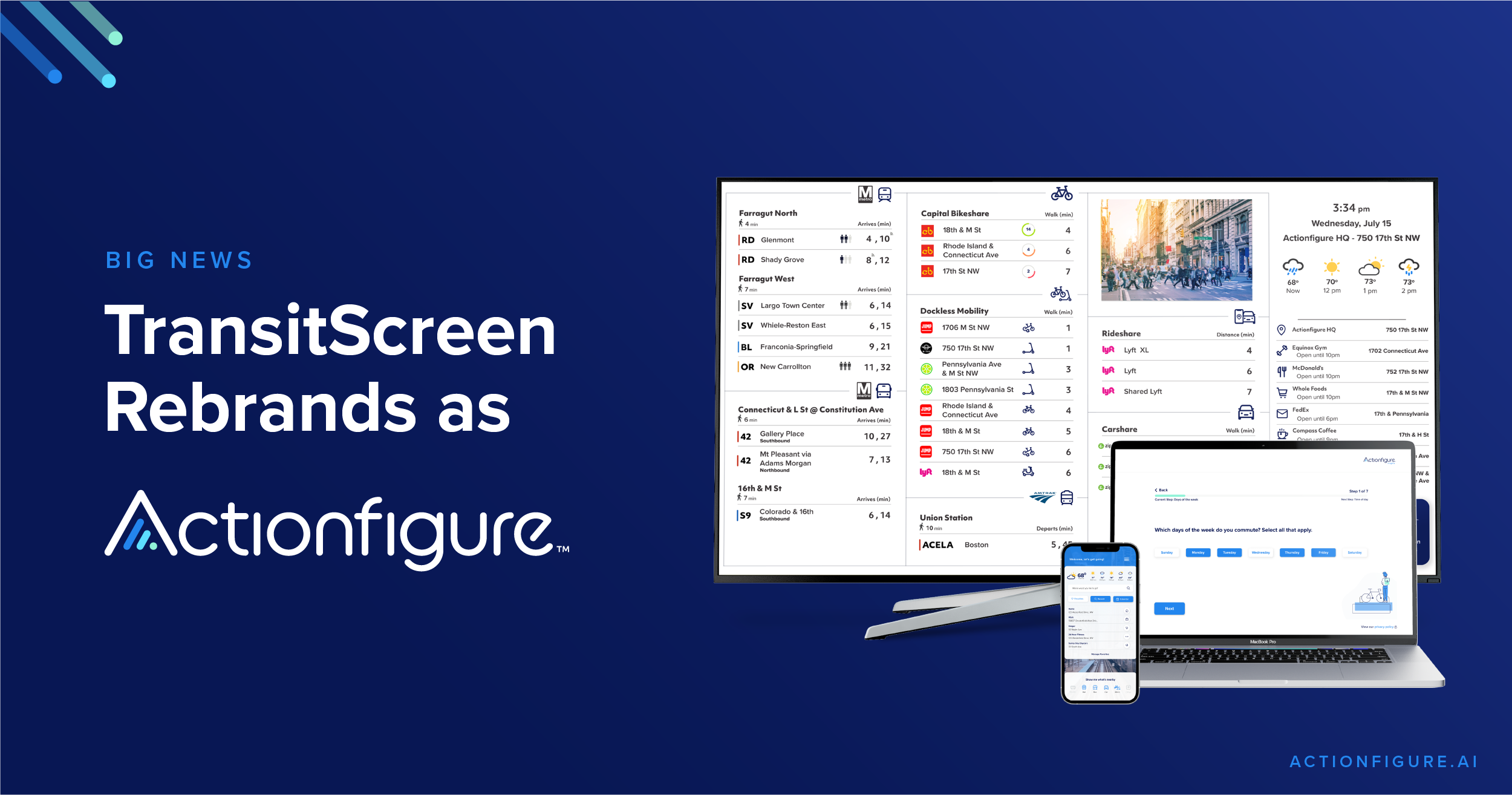 WASHINGTON, November 16, 2021 (Newswire.com) - TransitScreen announced today that it is rebranding as Actionfigure. As the global leader in transportation information software solutions, Actionfigure is bringing its software solutions together under a single identity as it continues to meet customers' evolving transportation and commute management needs, at any scale, and at any point of the journey.
