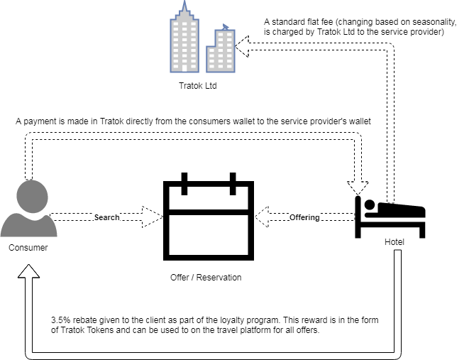 This reward program will apply to all stakeholders who use the Tratok project’s purpose designed and multi-platform application for all their travel and tourism needs. While current clauses mean that providers are not allowed to offer lower prices than on existing platforms, a lower fee and rebate program means they can show the same price and pay less than 4% in fees rather than up to 15% as is the case with current agreements with price aggregators. At the same time, consumers benefit from having lower transaction costs, enjoy an attractive 3.5% rebate that isn't unique to a single chain and lose their vulnerability to foreign currency exposure and delays with refunds.