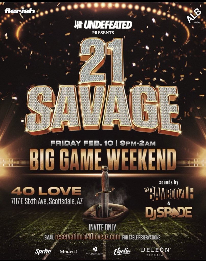 PHOENIX, February 9, 2023 (Newswire.com) - 40 Love Group and Avery Johnson Jr. have partnered with celebrity investors to launch a pop-up at 40 Love's newest location in old town Scottsdale during Big Game weekend, which will feature a live performance by Travis Scott (Feb. 11). Rapper 21 Savage has just been announced as Friday (Feb. 10) night's performer.