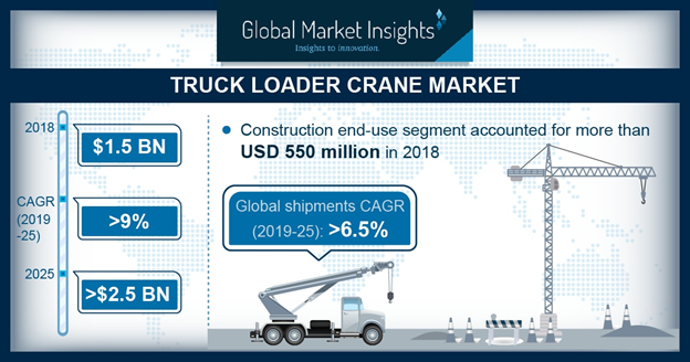SELBYVILLE, Del., February 6, 2019 (Newswire.com) - The Truck Loader Crane Market revenue is expected to grow from USD 1.5 billion in 2018 to USD 2.5 billion by 2025, according to a 2019 Global Market Insights, Inc. report. Increasing infrastructure transformation projects and rapid development of the construction industry across the globe are the major factors driving the truck loader crane market.