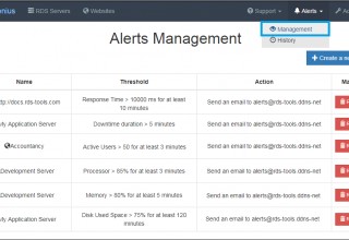 In addition to these great features, Server Genius also includes a variety of options for providing important information to decision makers before a crisis emerges. As a first step, administrators should set thresholds for defining which situations present the greatest risks to their TSplus installations. In the new 3.4 release, it is now possible to set alarms per server for excessive downtime. If these thresholds are exceeded, Server Genius uses various actions to immediately alert the administrator.