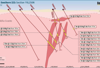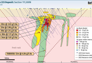 In November 2021 Barton confirmed the central zone of the 223 Deposit as a higher-grade priority development target area.2 In April 2023 the 223 Deposit MRE was upgraded from 965koz Au (26.1Mt @ 1.15 g/t Au) to 1.15Moz Au (38Mt @ 0.94 g/t Au) via significant depth extensions of 50 - 150m in three key target zones.3