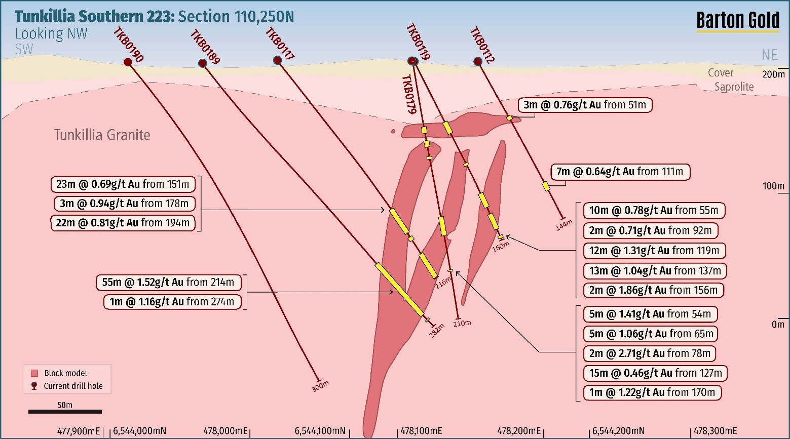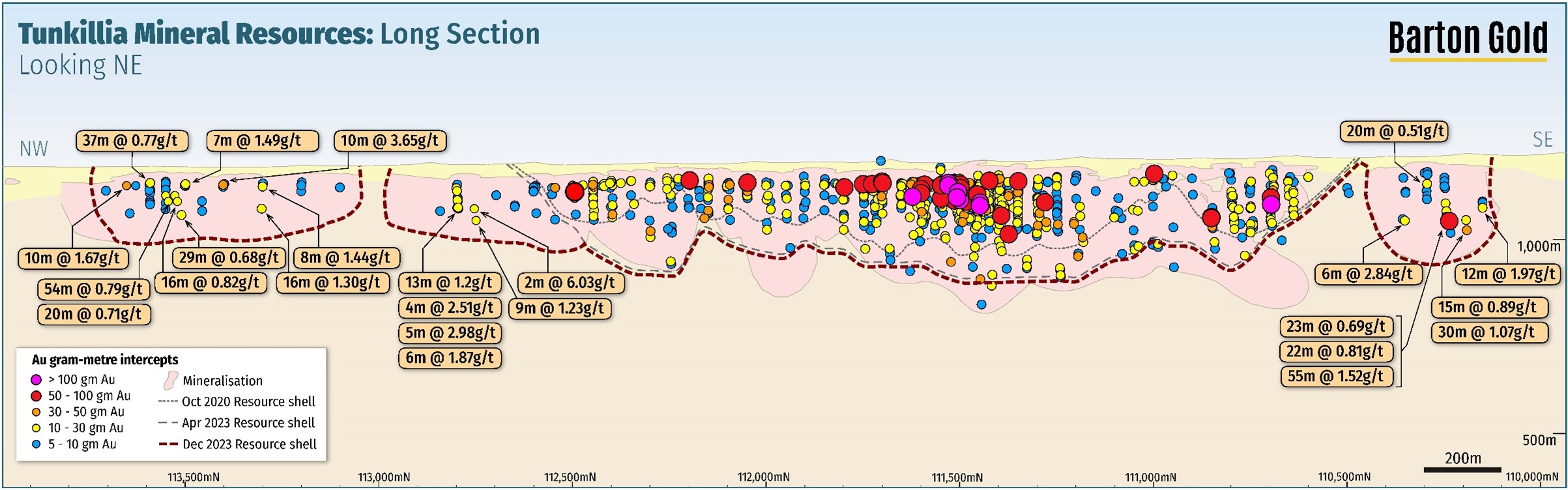 As a result, approximately 85% of all historical drilling was therefore completed with a weighted average gold price below USD $425/oz, and was on average very shallow. Barton has since confirmed multiple Tunkillia depth extensions and three new gold zones at Areas 223 North, 191, and 51, with three JORC MRE updates. 1