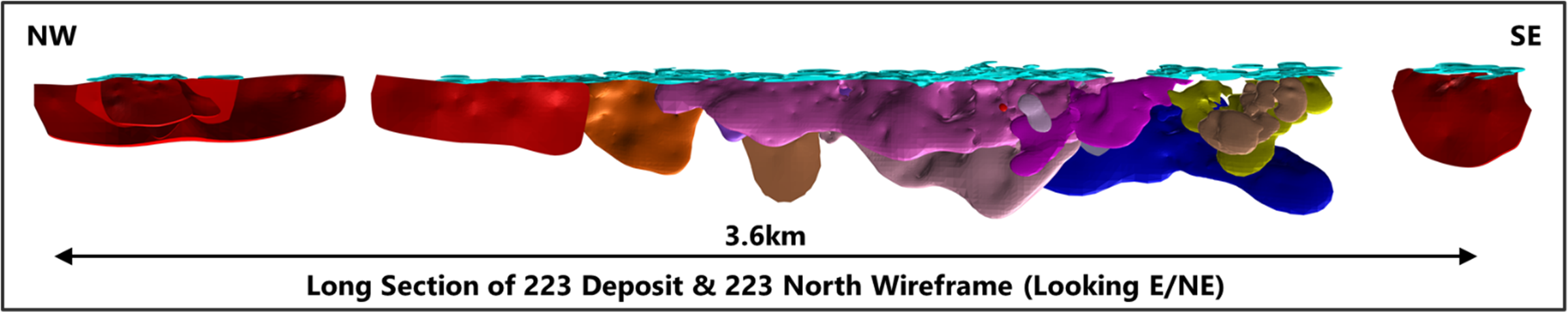 The 223 Deposit MRE has been modeled for potential development as a bulk open pit operation targeting efficiencies of scale and strong grade reconciliation. Tight grade capping and more internal dilution therefore yield a higher confidence and lower-risk model for future investment.