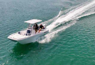 For anglers, Mr. Rudow lauded the robust feature set, noting its readiness to roll with a powder-coated T-top and amenities such as "a pair of 25-gallon livewells, a tackle station under the helm seat, and four rocket launchers across the back of the top." According to Twin Vee, the 22 BayCat features a 65-gallon fuel tank and is capable of handling up to 200 maximum horsepower, providing excellent range and performance for its class.