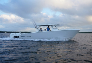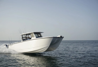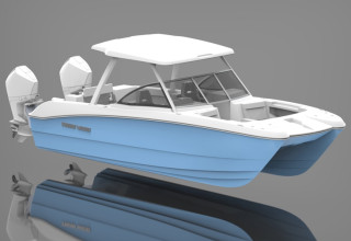 The Company's third new boat model is the Twin Vee 280 GFX Dual Console, which offers versatility for family adventures. Following a classic dual console layout, the 280 DC GFX utilizes all of its 9-foot 6-inch beam, creating a wide U-shaped lounge seating area in the front of the boat. "Our new 280 DC GFX provides a large seating capacity that can fit the whole family and more," states Visconti. "Our power catamaran's wide beam makes for a dual console configuration with roomy ergonomics perfect for socializing." According to the Company, the 280 DC GFX will also boast beautifully upholstered seating and bolsters throughout while allowing 360 degrees of fishability. Moreover, the helm is clean and clear, with a tempered and curved glass wraparound windshield that provides access to the bow through a hinged middle panel. The 280 DC GFX offers owners a variety of amenities for an all-day fishing excursion or a casual day of entertaining on the water.