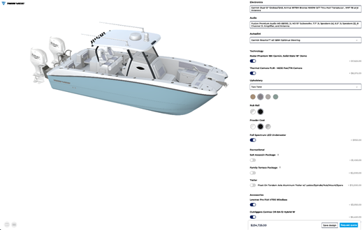 The 3D Configurator guides prospective purchasers through all customization options in an easy-to-follow process. As they make each choice, the 3D Configurator provides clear, straightforward, and real-time pricing updates. "Customers can freely experiment with different configurations across different boat models, compare various options side-by-side, and ultimately design a boat that is perfect for them and their budget," remarked Visconti.