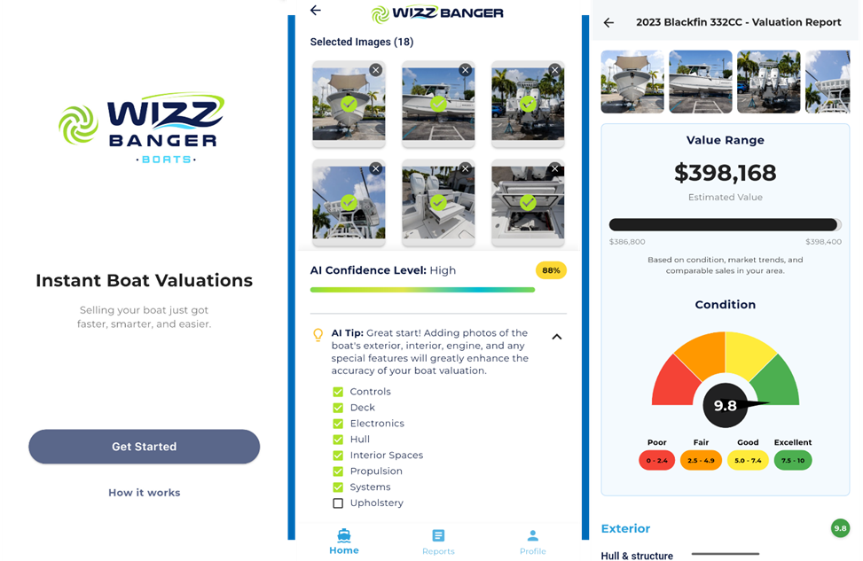 To help solve this, Twin Vee has developed the Wizz Banger Valuator (available on the Apple App Store and Google Play Store), a proprietary AI platform built to address the marine industry's most persistent financing challenge: inconsistent and unreliable valuations.