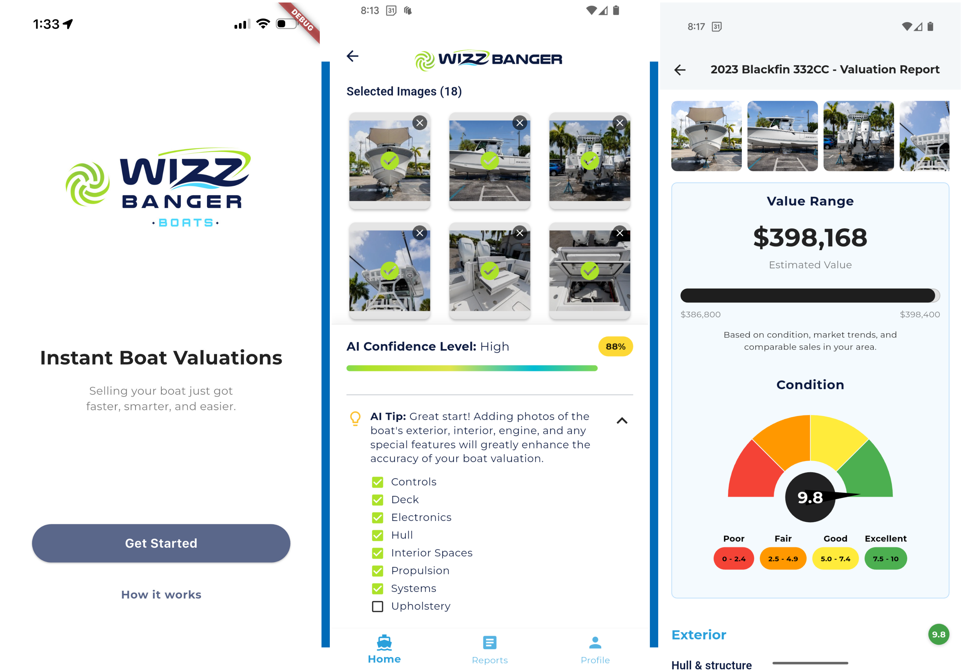 In addition to valuation accuracy, the WizzBanger Value App is designed for flexibility. Boat owners can use it as a do-it-yourself pricing guide, while dealers gain consistent, rapid valuations across their entire inventory. Lenders and insurers benefit from unbiased condition scoring and market-backed price ranges that make risk assessments more reliable. The app also supports repair planning, helping sellers understand which upgrades or fixes will deliver the greatest return before listing a vessel. These combined features ensure the tool delivers value across every corner of the marine ecosystem.