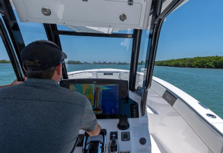 The 28AS also offers autonomous navigational technology as an optional feature. The advanced system, which utilizes GPS, LIDAR, and onboard cameras, allows advanced route planning, obstacle avoidance, and auto docking. Base-level autopilot, FLIR night vision, and Surround View are available as options as well, enhancing safety and fishing productivity.