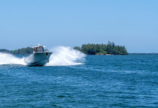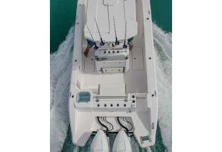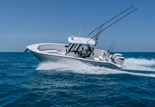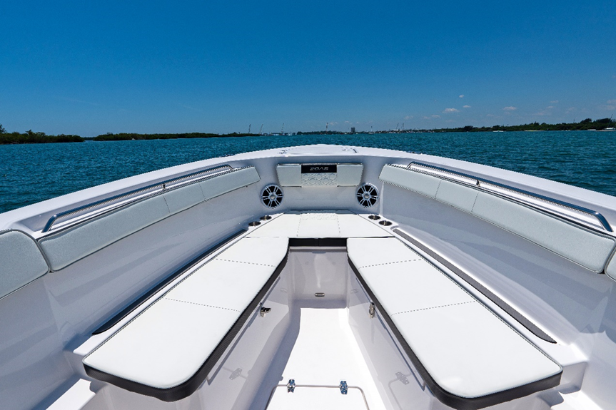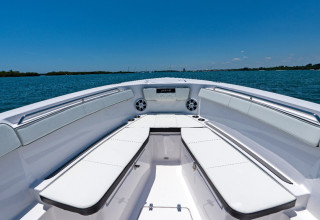 In the article, Power & Motoryacht discusses the 28AS's impressive construction, which utilizes a five-plane CNC machine to ensure the boat's strength and durability. Praising the 28AS's design, the article notes that, unlike many modern center consoles, the 28AS features a non-stepped hull, prioritizing stability and ease of operation, particularly for those new to offshore boating. The boat's portside swim/tuna door and a transom with doors that open for easy stern platform access were highlighted as well. Other features that the article found attractive included the 28AS's full array of digital switching with redundant physical switches, comfortable bow lounges, recessed bow rails, ergonomic helm seating, power-vented windshield, and the 24-inch multi-function display with chart plotter and fish finder for superior navigation.