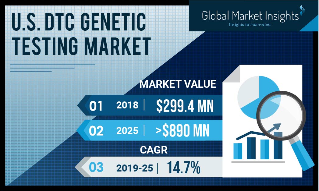 U.S. Direct-to-Consumer Genetic Testing Market to Hit $890 Million by 2025: Global Market Insights, Inc.