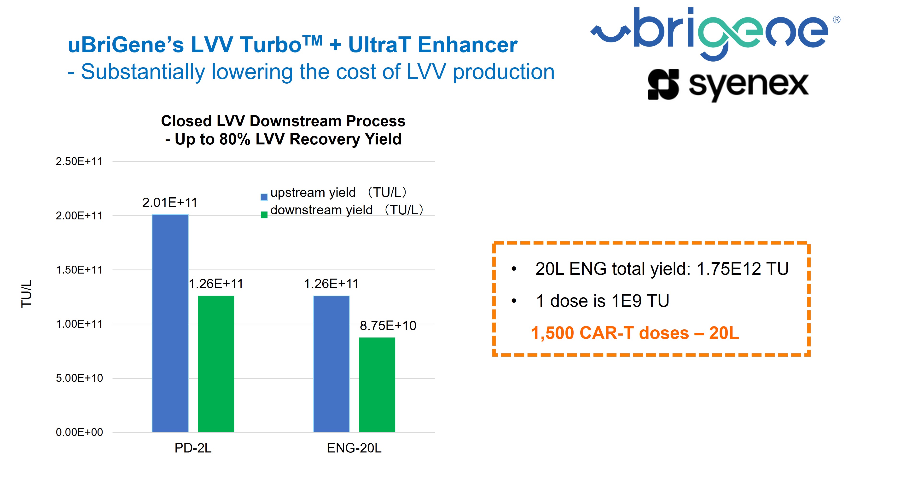 "We are excited to see UltraCell™ incorporated into uBriGene's LVV Turbo™ platform, where its 5-fold increase in functional yield for T-cell transduction can have a significant impact on lowering manufacturing costs, particularly for later-stage clinical trials and commercial production where scalability is limiting patient access to curative therapies," said Jay Rosanelli, Co-Founder and CEO of Syenex.