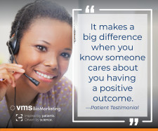 VMS BioMarketing is the leading provider of patient and HCP support solutions for biopharma. For 25 years, our singular focus has been on Clinical Nurse Educator programs, and we have invested in building a platform that is forward-leaning, proven and focused on improving outcomes. We have relationships with 800-plus Clinical Nurse Educators nationwide and deliver 1M-plus engagements for our clients, whose therapies span the product lifecycle and include 50-plus categories. Using behavioral health and analytical models, each of our engagements is highly personalized to address brand needs, support behavior change and lead to an improvement in medication adherence.